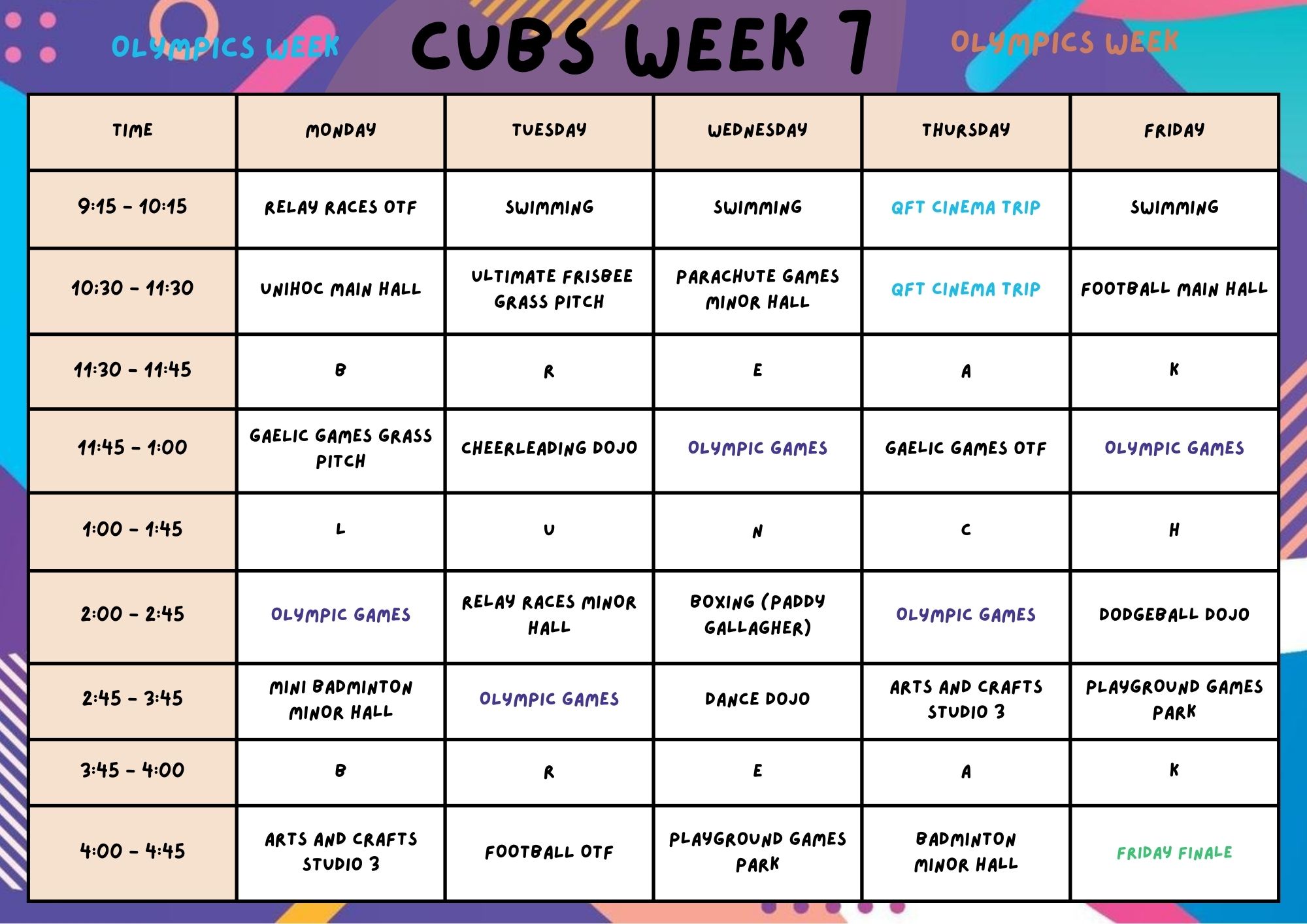 Week 7 Activity Timetable - CUBS - 11 August - 15 August