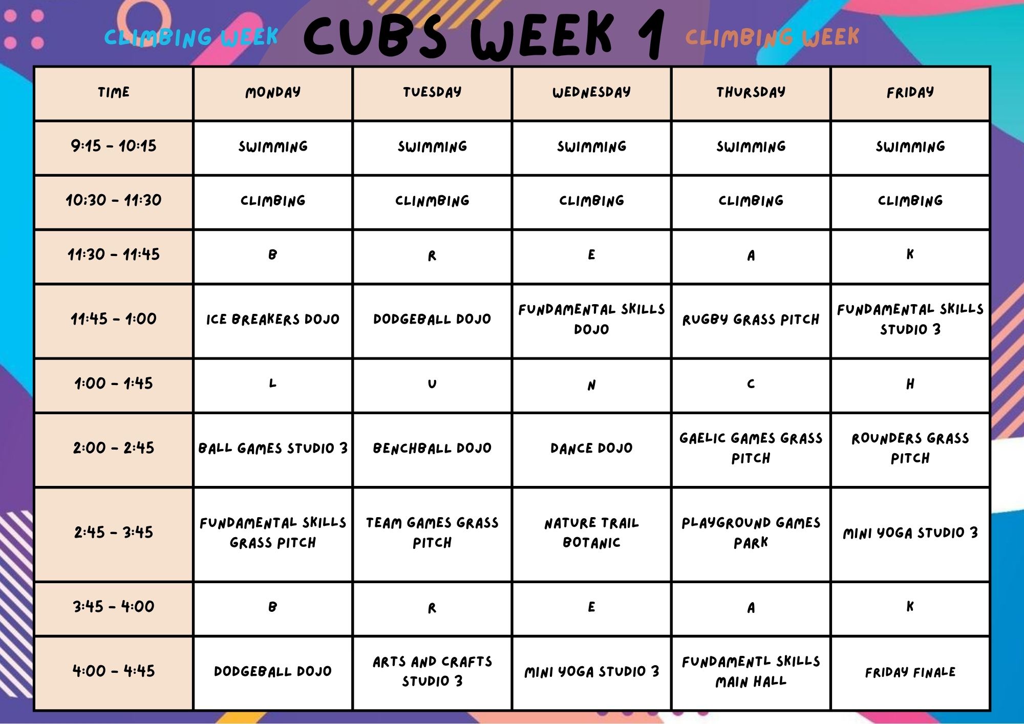 Week 5 Activity Timetable - CUBS - 28 July - 01 August