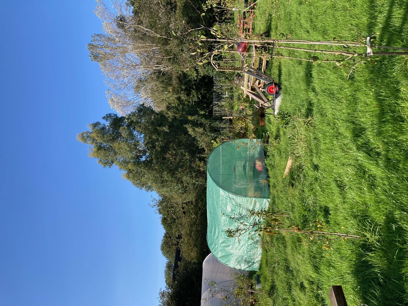 The orchard is one acre and has over two hundred British heritage trees, growing apples, pears, plums, cherries, hazelnuts, mulberries and other traditional fruit that copes well in our climate. There are raspberries too, and grapes, and polytunnels which gave them a bumper crop of tomatoes over the summer. Some of the trees are decorated with lights and have been planted in a unique formation; the number 97, to commemorate the people who lost their lives at Hillsborough. It can even be seen from planes flying overhead.
