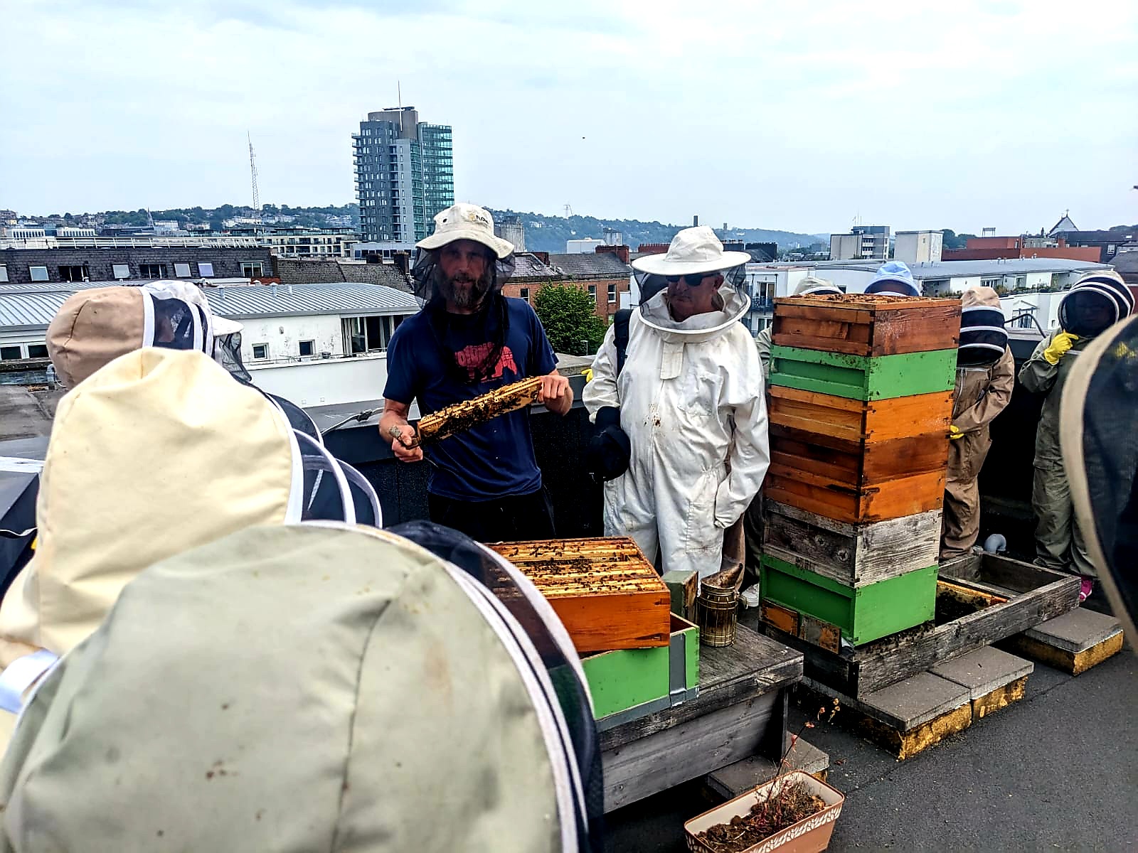 - Next, we headed to the roof of St John's Central College to visit bee hives, set up in conjunction with Hive Mind. Up close and personal with our favourite pollinators and honey producers