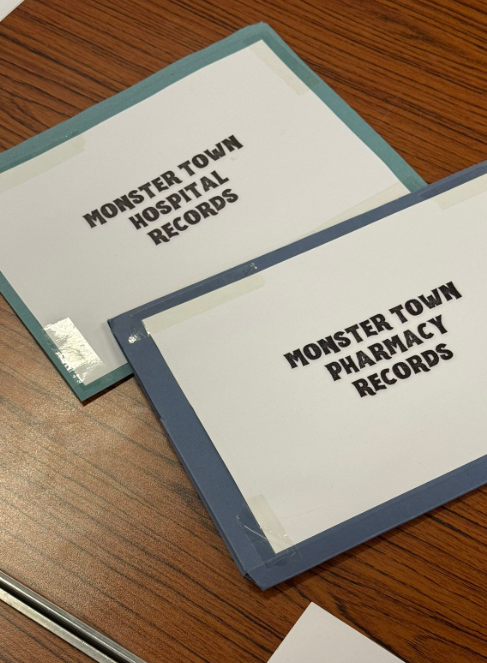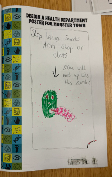 We held our public event on Halloween, and children aged 7-12 were invited to join us. The event was co-hosted with the Administrative Data Research Centre Northern Ireland, and both research teams dressed to impress (and scare). The children were guided through a series of activities designed to help them understand how we collect data, how we analyse data, and how data is used to make decisions to improve public health. All of the table activities centred around our fictional town – MonsterTown – and one creative young person drew a health poster for the MHS, the MonsterTown Health Service.
