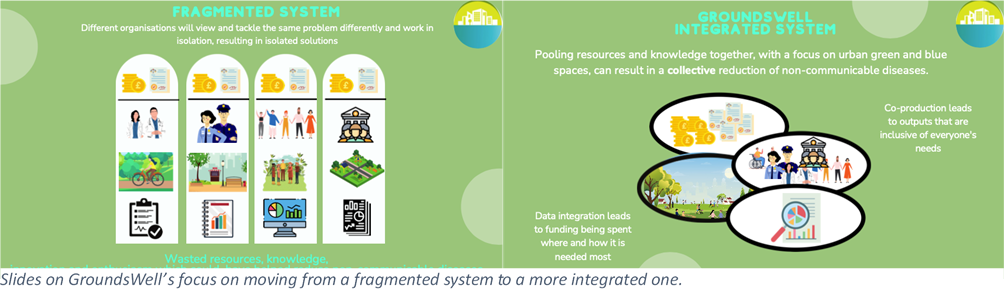 The event started with a presentation on the GroundsWell Consortium, it’s aims/objectives, current timeline and our focus on turning the current fragmented system into an integrated one.