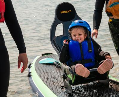 The beach setting provides a therapeutic blue environment, that can improve mental wellness, reduce stress, and provide opportunities to get active, and yet much of the public are excluded from taking part due to the environment not being suited to their needs. Mae Murray Foundation already have beach wheelchairs and other adapted equipment available at their Inclusive Beaches but, through the GroundsWell Innovation Fund, were able to purchase additional equipment including a specialised sit-down paddle board, adapted so that members can take part alongside their non-disabled friends and family.