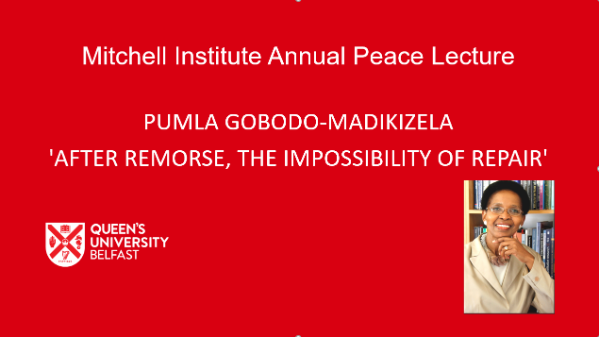 The Annual Peace Lecture for 2020 was delivered by Professor Pumla Gobodo-Madikizela, who is Professor in the Faculty of Arts and Social Sciences at Stellenbosch University. Pumla has published extensively on victims and perpetrators of gross human rights violations, and her current research interest is in intergenerational repercussions of historical trauma and exploring what the “repair” of these transgenerational effects might mean in societies where victims, perpetrators, and their descendants live together in the same country.