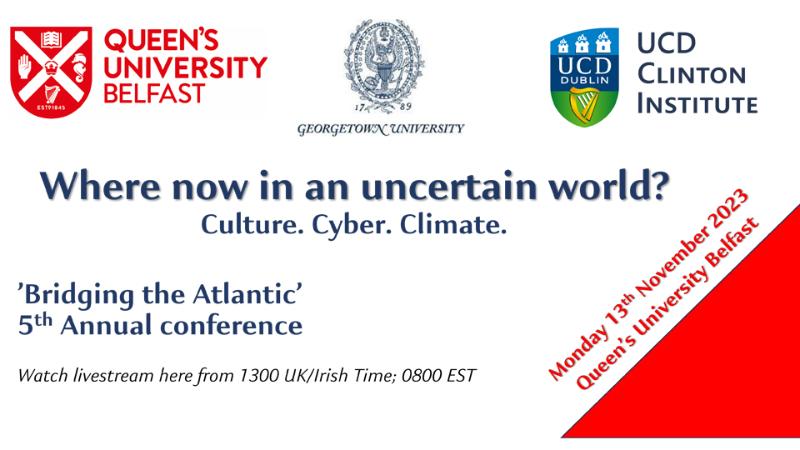 Join us in-person or online for the fifth ‘Bridging the Atlantic’ conference co-organised by QUB, UCD and Georgetown University, Washington DC.