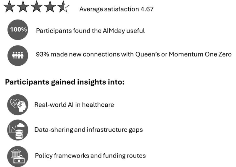 The event catalysed significant outcomes, including the successful acquisition of €9.85 million in PEACEPLUS funding for the OneHealth programme. Launching in October 2025, this initiative will support 32 local businesses in developing AI-driven health innovations. Notably, twenty-four businesses endorsed the funding application, eight of which were AIMday participants.