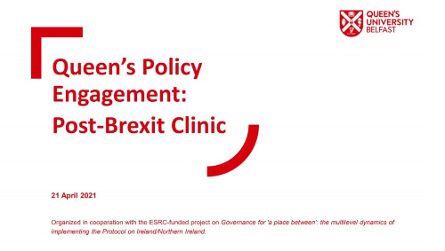 The Post-Brexit Clinics have been open to the public and organized in collaboration with Queen’s Policy Engagement team and have provided regular academically-informed assessments of key developments in the Brexit process and the implementation of the Protocol on Ireland/Northern Ireland.