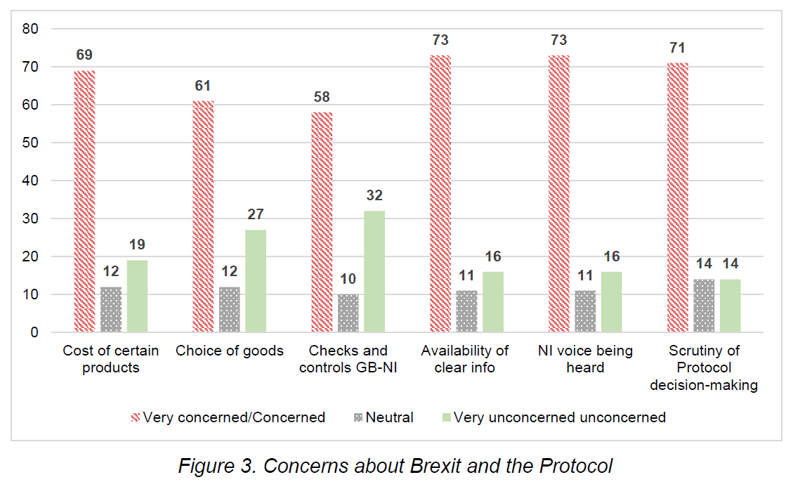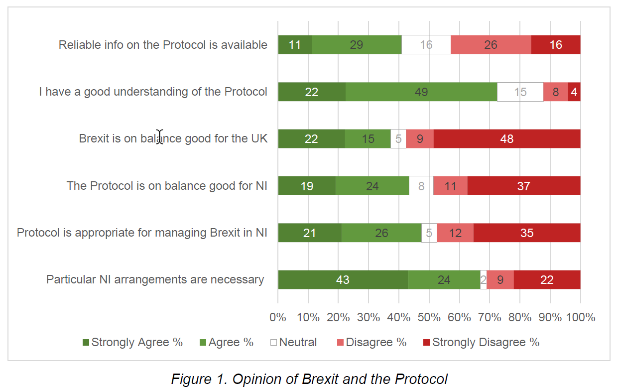 The survey also took place following the UK government’s formal response to the European Commission’s notice of legal action from 15 March 2021, although no further EU action has been taken. Judicial review proceedings challenging the Protocol have also been ongoing.