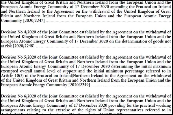 The provisions of EU law made applicable by the Protocol in the UK with respect to Northern Ireland are contained in a series of annexes. Where the UK and the EU agree that a new EU act should be applied, the relevant act is added to the Annex by a Decision of the Joint Committee which has general responsibility for decision-making concerning the implementation of the Protocol. How the Protocol is implemented is also determined by UK legislation.