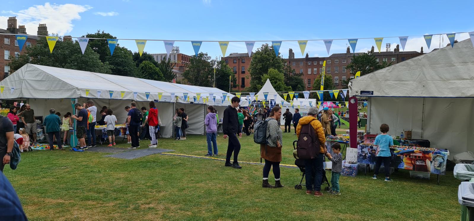 Myself, Gareth & Fionntán arrived at the event with the aim of finding out the number of maker labs that are operating in Ireland, the type of programs they are running, and how much enthusiasm there is on the Island for these types of science and tech spaces. Merrion Square is about the same size as Botanic Gardens and two minutes away from the popular walkways along the Grand Canal. It was a perfect July morning and when we arrived most of the stalls were still getting their equipment together. After some conversations with a few early birds, who were well prepared, we already got a sense of the event’s popularity, as people started streaming in from 11am.