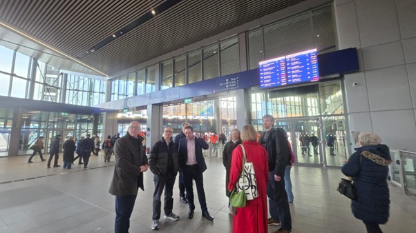 Monday kicked off with a visit to the city’s new transport hub, Grand Central Station, and the wider Weaver’s Cross development. The group met with representatives from Translink who showed them around the new site. They talked about the broader impact of the development on Belfast’s city centre and how the transport hub could also become a broader innovation hub. The proximity of the station to possible biotech labs, hospitals, and life sciences facilities would allow commuters to easily reach work in the city centre. They also discussed their attempted social impact in the area: including what they had achieved and the challenges they still faced. In the afternoon, the group met Garnet Busby from Belfast South in Sandy Row (a community adjacent to Weaver’s cross). This provided an interesting counterpoint to the morning’s discussion as the group heard the views on the development from this community’s perspective. By the end of, all involved with i3o had a better idea of the competing visions of what Belfast’s city centre should look like. Future-focused visions of innovation and change can sometimes sit uneasily with the visions that local communities have for themselves, particularly in challenging contexts of affordable housing shortages and places where their existence can feel under threat from over development.
