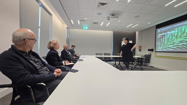 The final day of the i3o visit focused on the civic role of the university as a convenor and broker of inclusive innovation in Belfast. The group met QUB’s civic engagement team, where we learned about the evolution and ambitions the institution has as a place-based anchor, civic partner, and University of Sanctuary. Afterwards, i3o held a research seminar in Queen’s Communities and Place which provided an opportunity to reflect on the week. The group drew comparisons with their home contexts, discussed lessons learned, and made recommendations for future action. Many of the group praised Belfast’s innovation ecosystem and hoped that it would provide a vehicle to further enhance connection in an environment which they saw as still very divided.