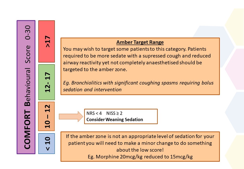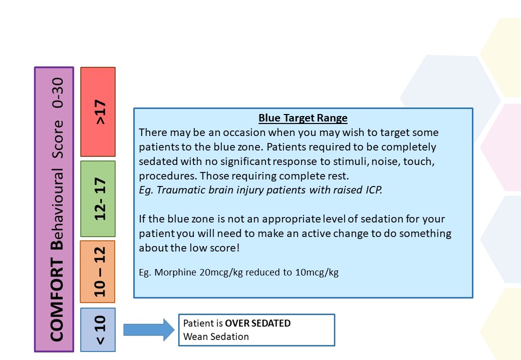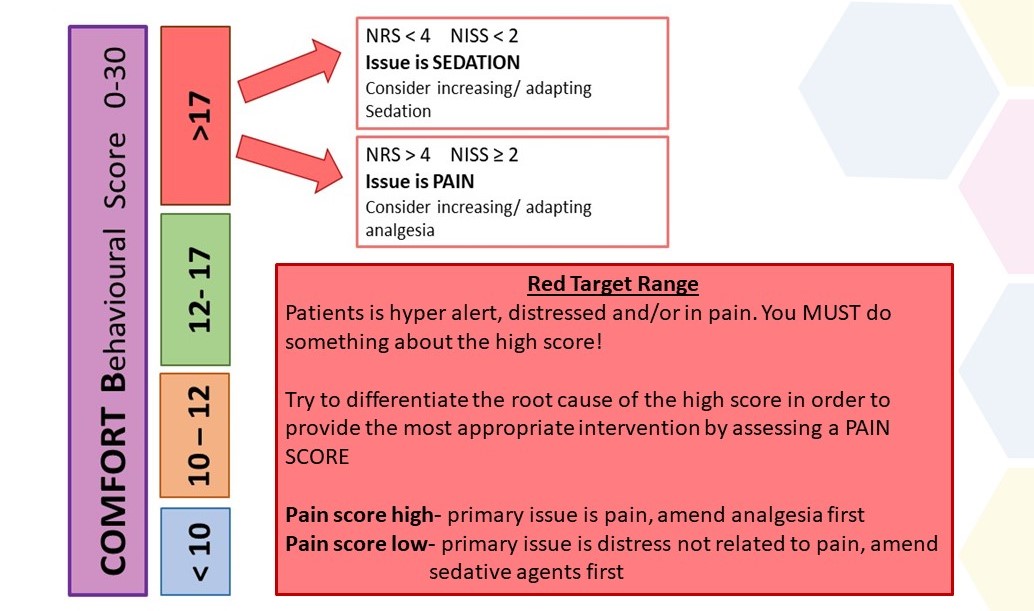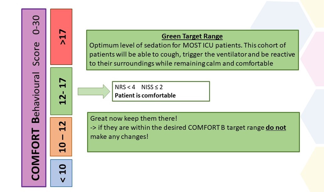 Please click on the drop down sections below to get a more indepth explanation of each of the COMFORT B score target zones and what to do to achieve them.