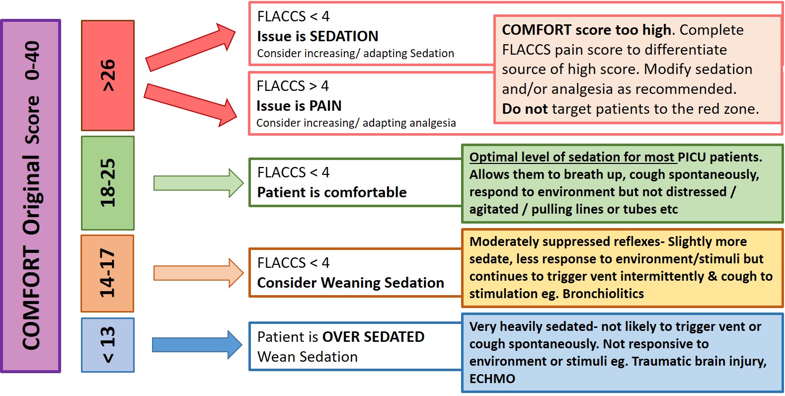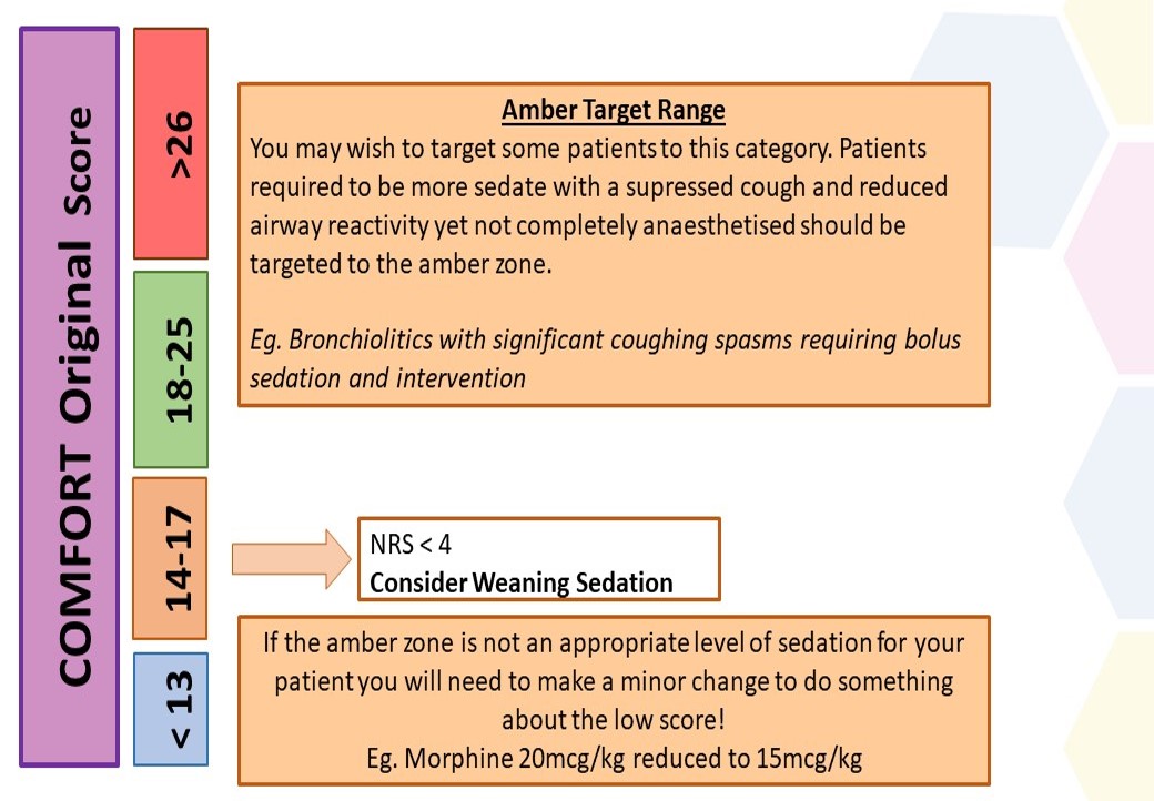 Please click on the drop down sections below to get an explanation of each of the COMFORT O score target zones and what to do to achieve them.