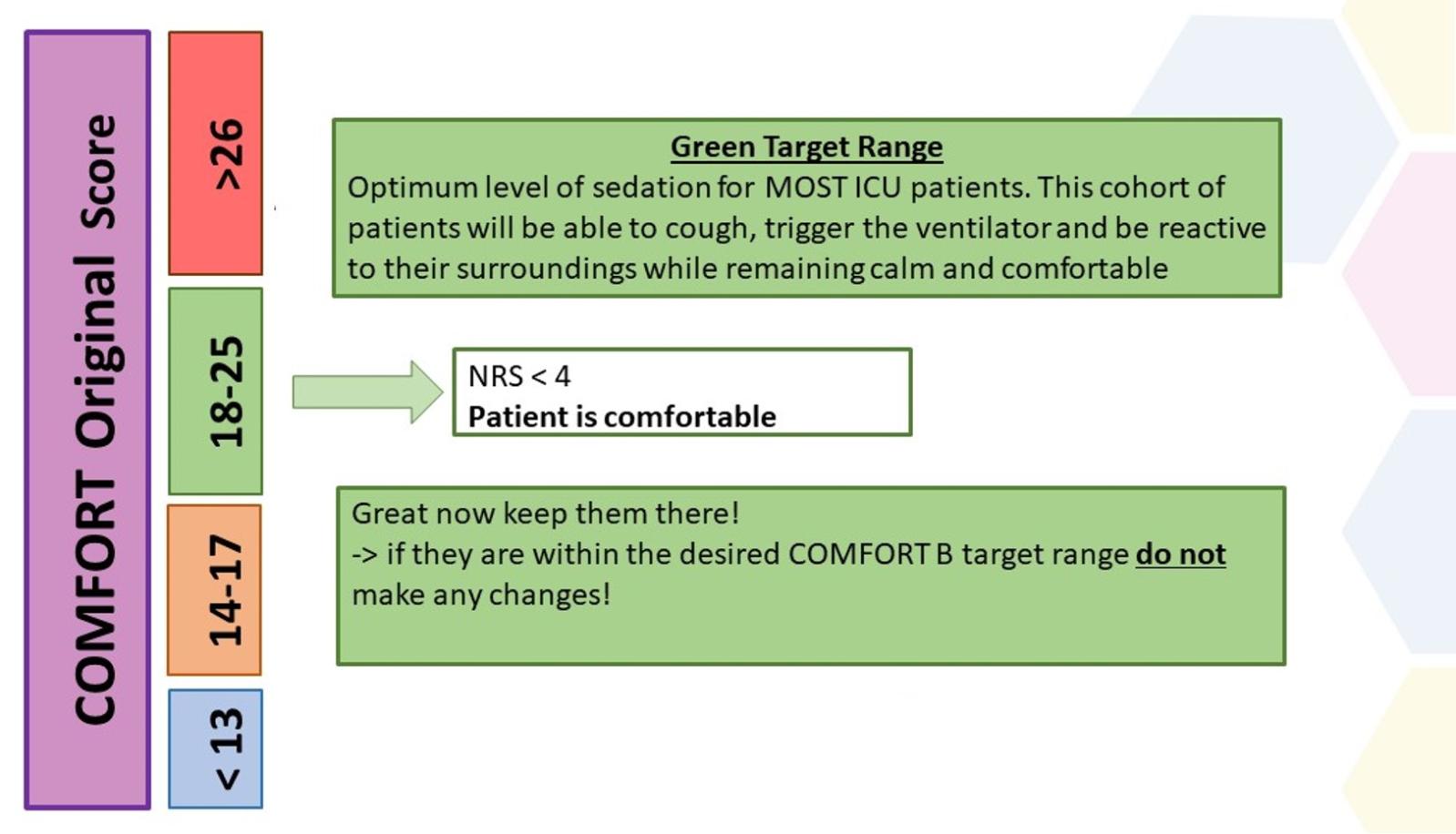 A key aspect of the SANDWICH QI Bundle is setting patient specific COMFORT targets to optimise sedation for each patient on an individual basis.